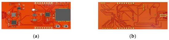 PCB design of IAQ sensor node: (a) top layer and (b) bottom layer.