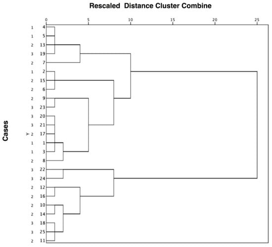 Results of the cluster analysis were summarized graphically into the dendogram. This diagram displayed the groups that are formed by clustering BWS cases at each step and their distance level. The distance level is measured along the horizontal axis and the different BWS cases are listed along the vertical axis.