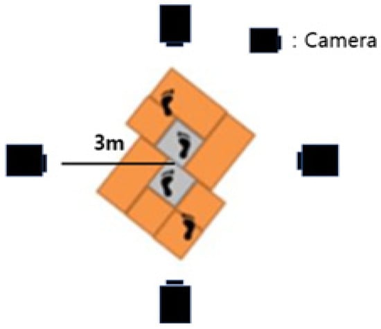 The data used in this study were obtained from four different cameras. The entire walkway is 10 m long, with force plates located in the middle. Each camera was placed three meters from the center of the pedestrian path, and the cameras at the front and back were about one meter from the end of the walkway. The walkway was firmly secured so that participants could walk comfortably without any separation or shaking.