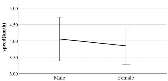 Gender difference in walking speed (F value: 3.58, DF: 289, p-value: 0.00).