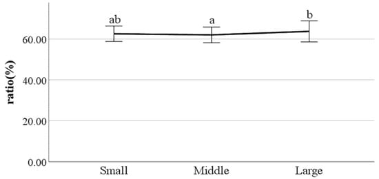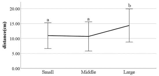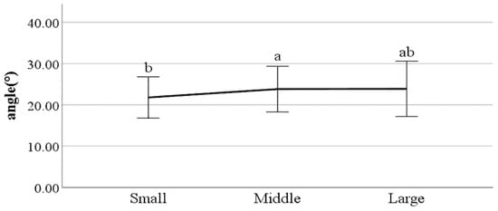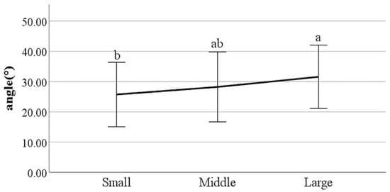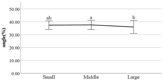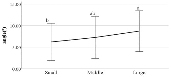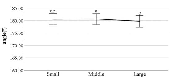 There were significant differences in the ratio of toe-in/toe-out gait between BMI groups. Small groups have a significantly higher proportion of neutral gait than other groups, as well as a significantly lower proportion of toe-out gait. By contrast, compared to the small group, the middle and large groups have a significantly higher proportion of toe-out gait. As a result, the smaller the body shape, the higher the percentage of front-facing toe steps, and the larger the body shape, the higher the percentage of walking with an outward-facing toe step. This result is consistent with the study of Hills and Parker, which stated that obese children walk with the toe facing outward [29]. This means that this study confirmed a close relationship between the body shape and the toe-out gait regardless of age.