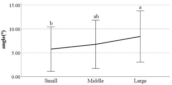In general, the results also show that as people get older, their necks bend further forward as they walk. According to Kocur et al., muscle degeneration with aging causes FHP (front head posture), which increases linearly from the age of 28 [20]. Therefore, the degree of FHP in the elderly is severe, which may increase the range of the head movements in the sagittal plane while walking, thus increasing the angle of the head movements in the sagittal plane. In addition, due to muscle degeneration caused by aging, the higher the age group, the more likely one’s head is to lean forward, which can cause an increase in the range of head movements in the sagittal plane.