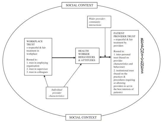 - Gilson, L.; Palmer, N.; Schneider, H. Trust and health worker performance: Exploring a conceptual framework using South African evidence. Soc. Sci Med. 2005, 61, 1418–1429. [Google Scholar] [CrossRef]