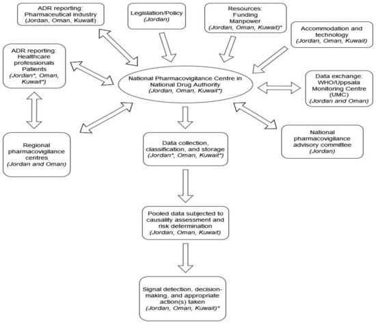 - Wilbur, K. Pharmacovigilance in the Middle East: A Survey of 13 Arabic-Speaking Countries. Drug Saf. 2013, 36, 25–30. [Google Scholar] [CrossRef]