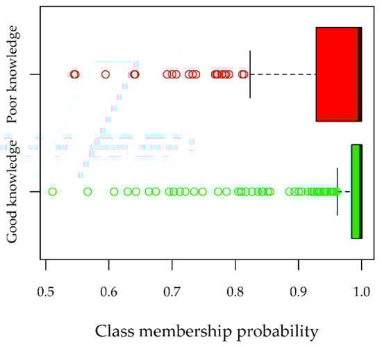 | Whole Sample (n = 438) | Poor Knowledge (n = 112) | Good Knowledge (n = 264) | p-Value | |