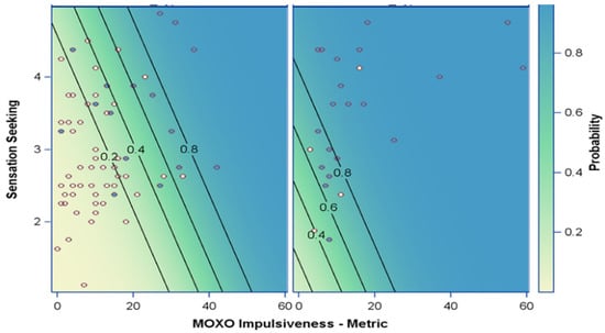 The likelihood for SUD by Sensory Over-Responsivity, MOXO-CPT Impulsivity, and Sensation-Seeking.
