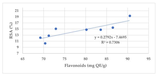 Sample | Phenolic Compounds (mg GAE/g) | Flavonoids (mg QE/g) | Flavones | Aromatic Acids | RSA (%) |