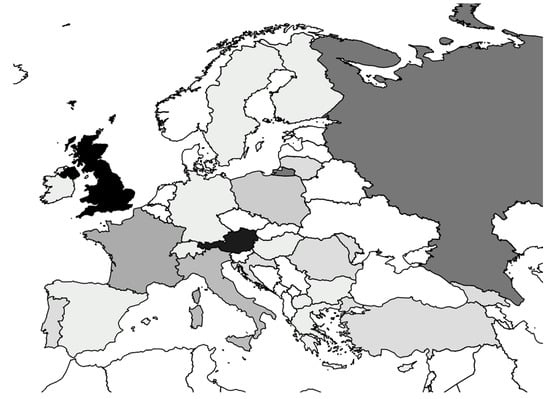 The n = 73 judgments involved applications against n = 23 countries. Most applications were filed against the United Kingdom (n = 15), following by Austria (n = 13), Russia (n = 8), France (n = 5), Italy (n = 4) and Poland (n = 3). N = 2 applications derived from Croatia, Georgia, Lithuania, Moldova, Portugal, Romania and Turkey, one application from Bulgaria, Cyprus, Finland, Germany, Greece, Hungary, Ireland, Macedonia, Spain, Sweden, and Switzerland (Figure 2).