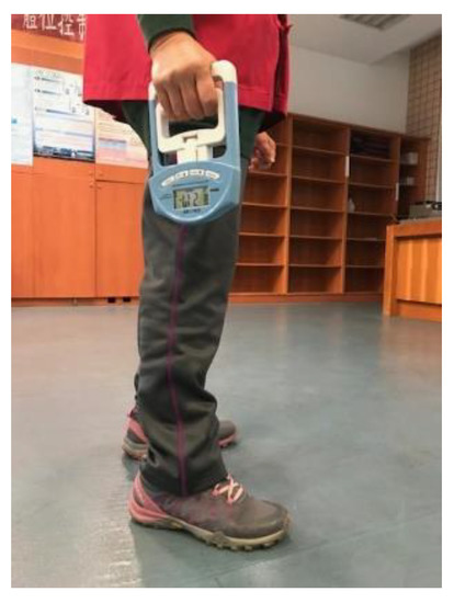 The grip strengths of the dominant hand of the participants were measured both before and after the 8-week testing period to determine whether their grip strength had improved and thus their sarcopenia had ameliorated after they have joined the PARP. A dynamometer (EH101, Camry Electronic Co, Ltd., Zhongshan, China) (Table 2, Figure 2) was used for this purpose. This dynamometer could measure grip forces up to 90 kgf. The grip force reading was shown in a digital displayer. The grip span was 5 cm. When measuring this force, the participant stood erect with his or her arm straight down by the side. This posture was recommended by Li and Yu [41].