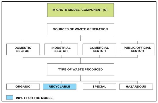 The M-GRCT’s first component (G) determines the sources of generation of recyclable solid waste for each municipality that can be valued with the model. These sources usually correspond to the domestic, commercial, industrial and official sectors, as shown in