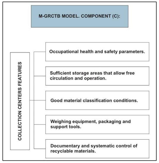 The M-GRCT’s third component (C) performs a characterization of the collection centers where recyclable waste is classified. The center’s main technical features, dimensions and administrative organization are detailed as shown in