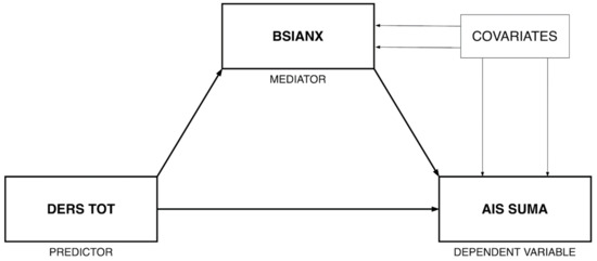 In order to test anxiety symptoms (BSIANX score) as a potential mediator in the association between emotional dysregulation (DERS TOT score) and insomnia (AIS total score), [53] the PROCESS SPSS macro for mediation analysis with bootstrapping (5000 resamples with replacement) was applied (see Figure 1 for the conceptual model). Biological sex and age were included as covariates.