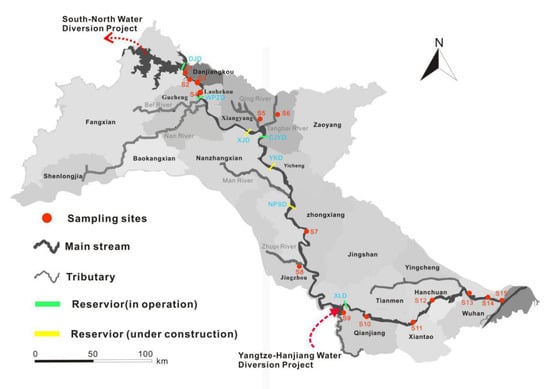 - Liu, Q.X.; Wang, T.; Xu, X.M.; Ni, J.R. Spatiotemporal Distribution and Its Influence Factors of Diatoms in the Middle and Lower Reaches of Hanjiang River. Acta Sci. Nat. Univ. Pekin. 2018, 54, 848–856. [Google Scholar]