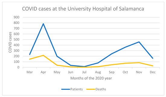 Evolution of COVID-19 cases at the Clinical Hospital of Salamanca for 2020.