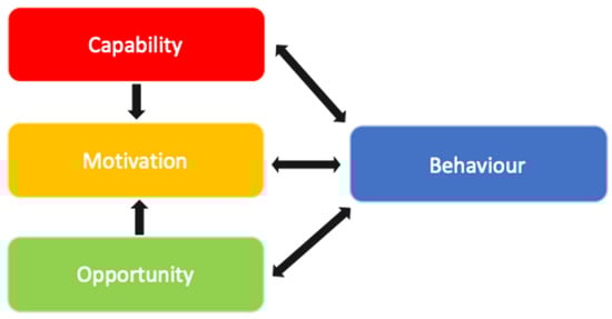 COM-B—a model for understanding behavioural influences [,] (Michie et al., 2011; Michie et al., 2014).