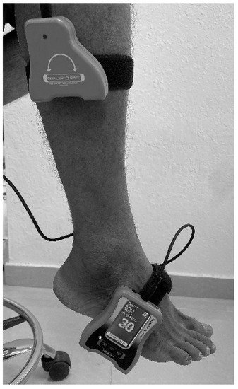 Individuals were requested to relocate their feet in dorsiflexion and plantarflexion directions to two targets (10° and 15°). During the JPS measurements, all patients were blindfolded to eliminate the contribution of vision. Subjects were instructed to sit on a couch with their eyes closed in a high sitting position. A velcro strap was used to secure one portion of the dual inclinometer to the lateral aspect of the tibia (mid-shaft). The primary inclinometer was fastened to the lateral border of the foot. The examiner guided the participant’s foot to the target angle of dorsiflexion or plantar flexion and was maintained for 5 s (asked to remember this position). Then, the foot was guided to a neutral or starting position. The participant was then instructed to reposition their foot to the target angle actively. The reposition accuracy is measured in degrees once the individual reaches the target position by saying “YES”. Three consecutive trials were performed in each tested direction, and the average of these three trials was considered for analysis.