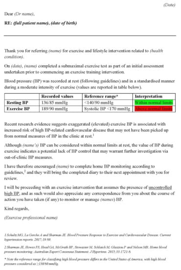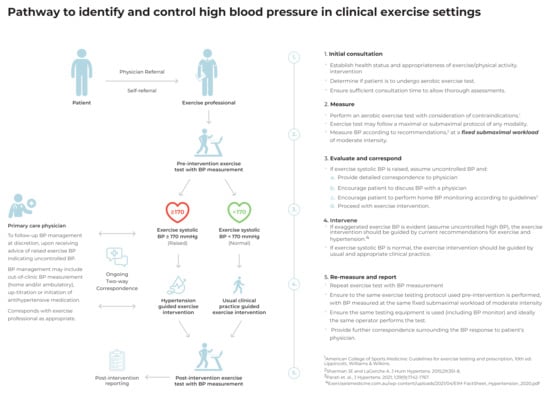 The following supporting information can be downloaded at: https://www.mdpi.com/article/10.3390/ijerph19052819/s1, Figure S1: Pathway to identify and control high blood pressure in clinical exercise settings; Figure S2: Example correspondence from an exercise professional to a primary care physician.