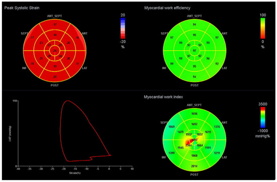 - El Mahdiui, M.; van der Bijl, P.; Abou, R.; Ajmone Marsan, N.; Delgado, V.; Bax, J.J. Global Left Ventricular Myocardial Work Efficiency in Healthy Individuals and Patients with Cardiovascular Disease. J. Am. Soc. Echocardiogr. 2019, 32, 1120–1127. [Google Scholar] [CrossRef] [PubMed]