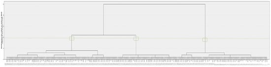 First of all, a hierarchical cluster analysis was carried out, which resulted in a dendrogram (Figure 1). The dendrogram describes the distribution of the data in each subcategory, according to the data being analysed. Cases that are similar will be grouped in each group and subgroup, thus creating the categories that the analysis considers relevant. In the present case, it can be seen that the hierarchical cluster analysis suggests creating three groups representing the totality of the cases, each divided by their similarity between each case, but distinct between each group.