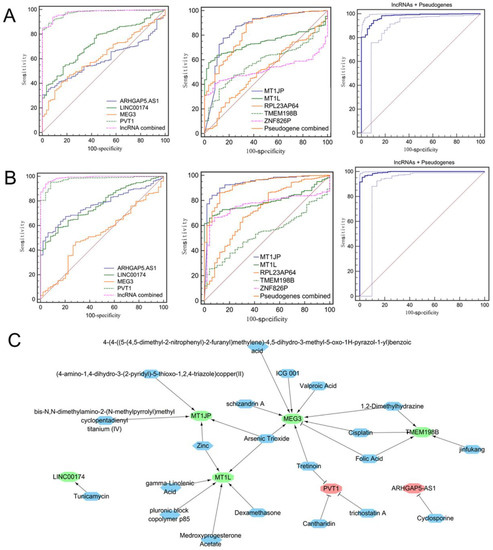 2.11. Diagnostic Analysis of Hub lncRNAs and Pseudogenes