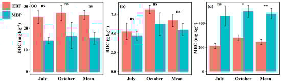 | Soil Property | Sampling Time | EBF | MBP | p-Value (Paired t-Tests) | |