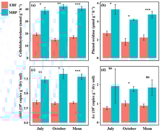 - Chen, J.; Sinsabaugh, R.L. Linking microbial functional gene abundance and soil extracellular enzyme activity: Implications for soil carbon dynamics. Glob. Change Biol. 2021, 27, 1322–1325. [Google Scholar] [CrossRef] [PubMed]