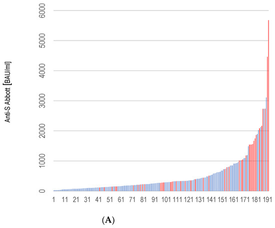 Blood samples were collected by a qualified nurse or physician. Samples (5 mL) were centrifuged (15 min/4500 rpm.), stored at 4–8 °C, and then transported to the Synevo laboratory in Cracow, Poland where they were tested. Briefly, post vaccination anti-spike IgG responses were assessed using the Abbott SARS-CoV-2 IgG II Quant antibody assay, an automated, two-step chemiluminescent microparticle immunoassay (CMIA) targeting the spike RBD. The assay was used for the qualitative and quantitative assessment of IgG antibodies to SARS-CoV-2 in human serum and plasma on the ARCHITECT i System. The assay cut-off was ≥7.1 BAU/mL, as reported by the manufacturer. The sensitivity (based on ≥14-day post-positive reverse transcription-Polymerase Chain Reaction (PCR) samples) and the specificity of the Abbott anti-nucleocapsid assay had been previously evaluated as 98.3% (90.6–100.0%) and 99.5% (97.1–100%), respectively [22].