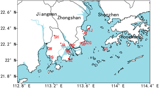 The Guangdong–Hong Kong–Macau Greater Bay Area (GBA) megalopolis has been experiencing an accelerated progress of urbanization due to rapid social and economic development, which meanwhile may result in the changes of land use. However, despite a high level of urbanization, there was almost no relevant research for the GBA megalopolis. To investigate the effects of urbanization on the SWS, the analysis of the present study will focus on the GBA region, with particular focus on the city of Zhuhai, which is a coastal city located in the southeast of the GBA megalopolis and is mainly dominated by plains and low hills with small elevation variations. As a typical representative of the GBA cities, the SWS characteristics in Zhuhai were remarkably altered during the recent decades, which is in line with the rapid urbanization processes during this period. In Zhuhai, meteorological measurements have gradually become increasingly denser. Thus far, there are 98 automatic meteorological observation stations, and 12 of them have been under operation over 10 years.