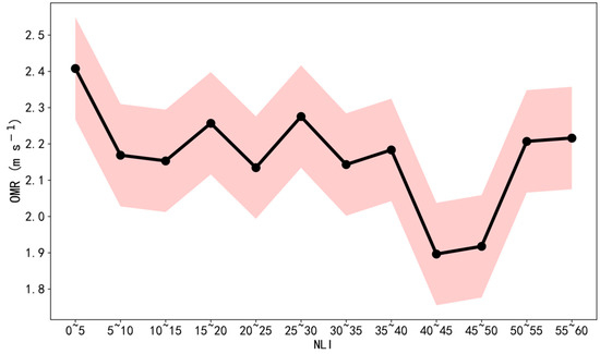 Variations of OMR (m s−1) according to NLI, with the shadings denoting the standard deviations.