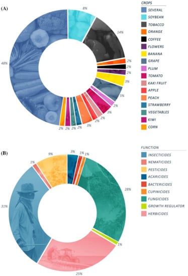 - Brasil, Ministério da Agricultura, P. e A. de D.A. Portaria No. 43, de 21 de Fevereiro de 2020. Available online: http://www.agricultura.gov.br/assuntos/insumos-agropecuarios/insumos-agricolas/agrotoxicos/informacoes-tecnicas (accessed on 21 February 2020).