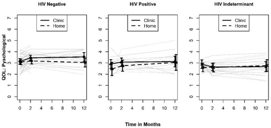 Plots of QOL Psy by HIV test results.