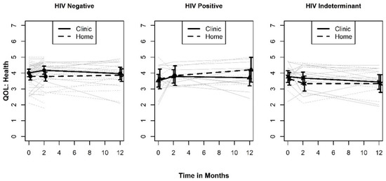 Plots of QOL Health by HIV test result.
