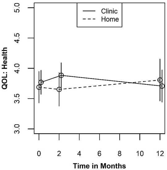 Plot of the two-way interaction for QOL Health by time.