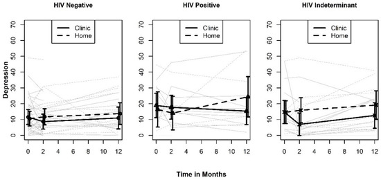 Plots of depression by HIV test result.