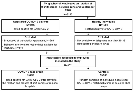 We conducted a concurrent case-control study among Tengizchevroil (TCO) oilfield workers who worked on-site between 1 June and 15 September 2020.