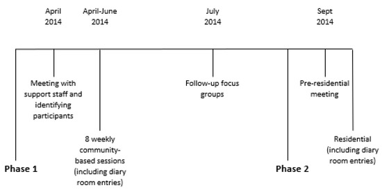 Reflecting the dynamic nature of supported accommodation, only four out of 15 young people participated in both phases of the program. Rather than viewing this as a limitation, a pragmatic decision was made to use this unexpected opportunity to explore whether Phase 1 was a necessary pre-requisite for Phase 2 [56]. Facilitators observed that those young people who participated in Phase 1 were better able to adapt to the novel outdoor adventure challenges provided in Phase 2, suggesting that young people benefitted more from the residential course if they had previously completed the eight weekly sessions of the community phase [26]. When possible, in line with seasonal constraints (i.e., the outdoor pursuits center is closed over the winter months), a shorter gap between phases is needed to improve the feasibility of the two-phase delivery model and reduce the potential for a drop-off in participation.
