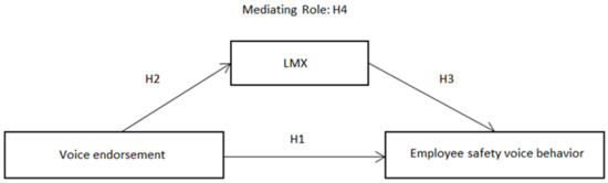Graen and Uhl-Bien [21] argued that the attitude and supportive behavior of leaders to employees are greatly affected by the quality of LMX. When there is a high quality of LMX between employees and leaders, leaders will provide employees with more work resources. Employees will take certain risks in the process of safety voice. The trust and support of leaders to employees will reduce employees’ risk perception, thus increasing the possibility of safety voice [37]. According to social exchange theory, when employees get extra support from leaders and organizations, they will have a sense of obligation to repay the organization [22]. It is also more likely to make safety voice for improving organizational safety. Therefore, voice endorsement will negatively affect LMX and then reduce the safety voice behavior of employees. LMX plays a mediating role between voice endorsement and employee safety voice.