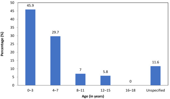 In the school files, the timing of the first ACE of each student was registered, if available. We found that almost half of the students experienced their first ACE before the age of 4 (45.9%) (Figure 2).