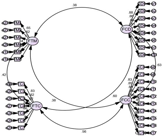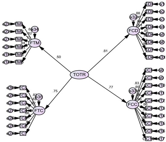 Further, for the teacher-level construct (Level-2), first, we conducted a first-order measurement model (Figure 4). Second, we conducted a second-order measurement model (Figure 5).