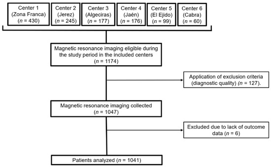 We conducted a retrospective observational study based on a consecutive case series of all patients that underwent brain MRI due to headache from 1 January 2019 to 31 May 2019. We included patients from six MRI diagnostic centers (Algeciras, Cabra, El Ejido, Jaén, Jerez, and Zona Franca) accounting for four provinces of Andalusia (Almería, Cádiz, Córdoba, and Jaén). All MRIs undertaken in these centers were referred from a total of 11 public hospitals (Complejo Hospitalario Torrecárdenas, Complejo Hospitalario de Jaén, Hospital San Juan de la Cruz, Hospital de Poniente, Hospital Infanta Margarita, Hospital Universitario Puerta del Mar, Hospital Universitario de Puerto Real, Hospital de Jerez de la Frontera, Hospital Punta de Europa, Hospital Militar de San Carlos, U.S. Naval Hospital Rota) and private healthcare companies. Inclusion criteria were: patient’s age > 3 years; headache as main reason for MRI order, and imaging modality: contrast or non-contrast-enhanced brain MRI. Exclusion criteria included incomplete studies (claustrophobia, non-diagnostic quality MRI, equipment failure, etc.) and lack of outcome data (i.e., missing or incomplete radiology report). All studies were performed in 1.5 T MRI machines with similar technical parameters and imaging protocols, determined by the clinical scenario based on the ACR appropriateness criteria.