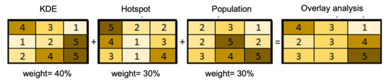 - Kalinic, M.; Krisp, J.M. Kernel density estimation (KDE) vs. hot-spot analysis–detecting criminal hot spots in the City of San Francisco. In Proceedings of the 21st Conference on Geo-Information Science, Lund, Sweden, 12–15 June 2018. [Google Scholar]