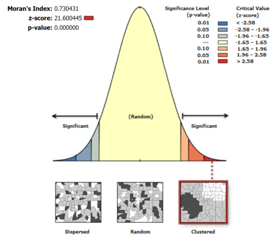 - To estimate the spatial autocorrelation, first, a default minimum distance is chosen. The ISA technique then evaluates the distance between features to ensure that each segment has a neighbor. In this research, 2 km (kilometers) was set as the default distance for the ISA technique. The spatial autocorrelation values are then computed by increasing the distance incrementally.