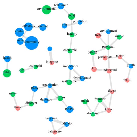 Figure 6 shows the co-occurrence map. It can be seen that the students recognise the importance of the younger generation in driving the activities to contribute to environmental issues and to have a deeper understanding of where problems lie. At the same time, they also acknowledge the criticality of economic growth for the sustainable development of society.