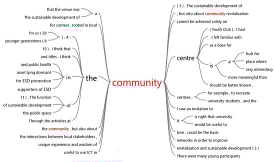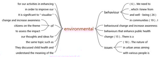 An exploratory review of the textual data from the interviews with a total of 30 participants in the ESD project provides an overview of how the words ‘environment’ and ‘community’, the core themes of the study, are perceived and evaluated by the students (Figure 7).