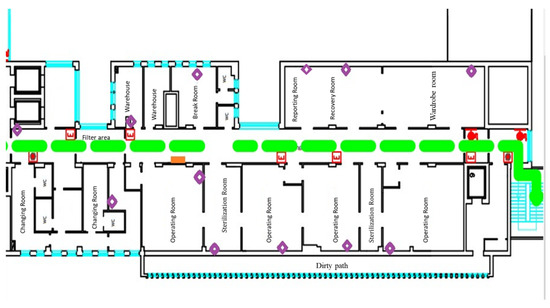 In order to design and test the proposed FIS, the “Umberto I” Hospital situated in Nocera Inferiore, Salerno (Italy) was chosen. The multi-specialized Operating Department (OD) of the “Umberto I” Hospital is structurally equipped with apposite dirty—clean paths for healthcare personnel, patients, surgical instruments, and waste. The block has a filter zone for patients and healthcare professionals and it is provided with an internal sterilization local.