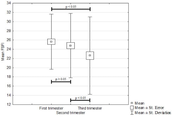 Mean FSFI score depending on pregnancy trimester.