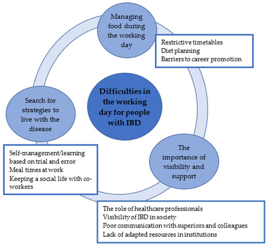 Feeding Difficulties Associated with IBD during the Working Day: Qualitative Study, Alicante Spain