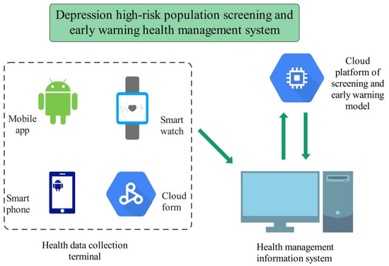 The designed system integrates various functions, such as health information collection, health status machine learning screening, automatic early warning based on database technology, and a short-message platform [33], and preliminarily realized the preventive treatment and health management of a population at high risk for depression.