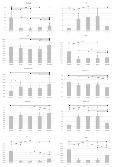 - Tarvainen, M.P.; Niskanen, J.-P.; Lipponen, J.A.; Ranta-Aho, P.O.; Karjalainen, P.A. Kubios HRV–heart rate variability analysis software. Comput. Methods Programs Biomed. 2014, 113, 210–220. [Google Scholar] [CrossRef] [PubMed]