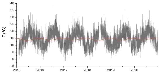 Figure 2 shows the time series of temperatures for the Polychrome Room and the exterior zone of the cave from 2015 to 2020 where the different amplitudes and the time series lag can be seen.